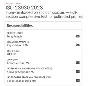 近日,國際標(biāo)準(zhǔn)化組織ISO正式頒布了ISO 23930:2023 《纖維增強(qiáng)塑料復(fù)合材料——拉擠型材全截面壓縮試驗(yàn)方法》(Fibre-reinforced plastic composites — Full-section compressive test for pultruded profiles),這部標(biāo)準(zhǔn)由清華大學(xué)土木工程系馮鵬教授提案并擔(dān)任項(xiàng)目負(fù)責(zé)人(Project Leader),是復(fù)合材料技術(shù)領(lǐng)域首項(xiàng)由我國提案并主導(dǎo)制訂的國際標(biāo)準(zhǔn)項(xiàng)目。