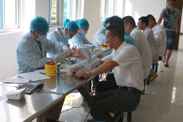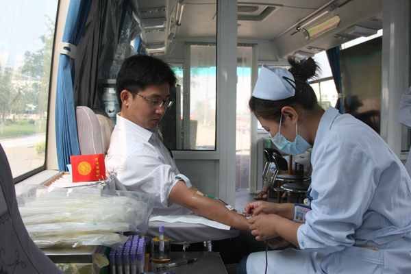在獻(xiàn)血現(xiàn)場(chǎng),大家填寫(xiě)表格、測(cè)量血壓、驗(yàn)血、抽血,有條不紊,員工們排起長(zhǎng)長(zhǎng)的隊(duì)伍。隊(duì)伍中有公司高管、中層管理人員,也有來(lái)自基層的生產(chǎn)工人;有剛剛參加工作的大學(xué)生,也有工作了二十幾年的老黨員們;有第一次鼓起勇氣獻(xiàn)血的,也有多次獻(xiàn)血的……管道車間楊澤平經(jīng)理第一個(gè)登上了采血車,勇敢地伸出來(lái)胳膊,這是他第一次獻(xiàn)血—300cc;一位新員工說(shuō),作為社會(huì)新鮮人,這是一堂重要的社會(huì)課,他們要從這一刻起,要學(xué)會(huì)奉獻(xiàn)社會(huì)、承擔(dān)責(zé)任。