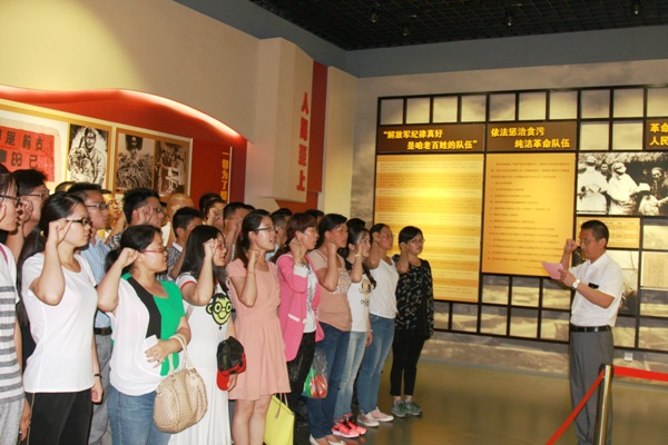 在淮海戰(zhàn)役廉政教育專題展廳,黨員代表握緊拳頭、舉起右手,莊嚴(yán)的重溫入黨誓詞。大家紛紛表示,淮海戰(zhàn)役的勝利證明,贏得人民信任,我們黨就能無往而不勝,得到人民的支持,我們黨就能克服任何艱難險(xiǎn)阻。先輩們崇高堅(jiān)定的信仰、艱苦奮斗的精神、清正廉潔的作風(fēng),密切聯(lián)系群眾的優(yōu)良傳統(tǒng),將引領(lǐng)我們不斷創(chuàng)造新的業(yè)績(jī)。