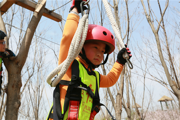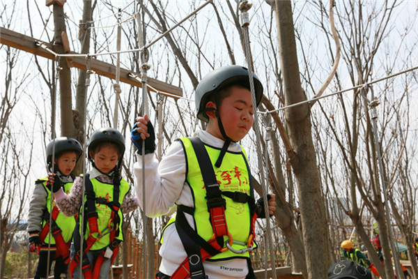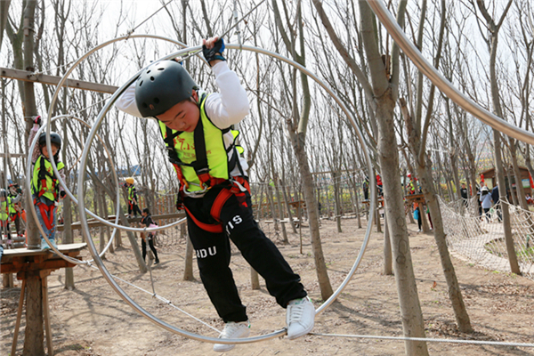 活動當天,所有參加人員身穿統(tǒng)一服裝來到葉片事業(yè)部連云港工廠,葉片事業(yè)部的領導們?yōu)樾∨笥杨C發(fā)了紀念品以示歡迎。他們先后參觀了公司的葉片實驗臺、16#生產(chǎn)車間及多功能展廳。孩子們看到展廳里隨著音視頻轉(zhuǎn)動的葉片,一個個興奮地爭先合影。一個小朋友看到多維葉片模型直呼是爸爸做的,逗得旁人一陣笑。隨后,所有人員乘車來到拓展基地開展戶外親子活動,活動共準備了3個節(jié)目:叢林探險、互動小游戲、動物表演秀。叢林探險的每個環(huán)節(jié)都充滿挑戰(zhàn),小朋友們需要在父母的支持與鼓勵下逐級過關,小游戲環(huán)節(jié)則需要孩子們獨立完成,汗水與歡笑在孩子們紅撲撲地小臉上洋溢著,最終每個孩子都獲得了工作人員精心準備的獎品,個個滿載而歸。一位來自一線的員工說道,自己平時工作忙,很少有機會陪孩子玩,在這次親子活動中,可以和孩子一起互動玩游戲、看表演,感覺特別幸福。