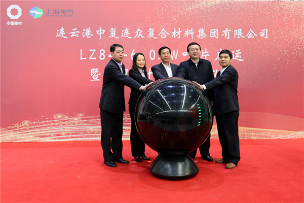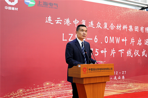 2018年12月27日,中復(fù)連眾集團(tuán)在連云港舉行LZ84-6.0MW葉片啟運(yùn)暨B75葉片下線儀式。中國建材集團(tuán)副董事長李新華,連云港市人民政府副市長徐家保,上海電氣風(fēng)電集團(tuán)總裁謝雪瓊,中國復(fù)材集團(tuán)黨委書記、董事長、總經(jīng)理劉標(biāo),連云港經(jīng)濟(jì)技術(shù)開發(fā)區(qū)黨工委副書記、常務(wù)副主任胡傳宏共同啟動水晶球,見證這一歷史時刻。