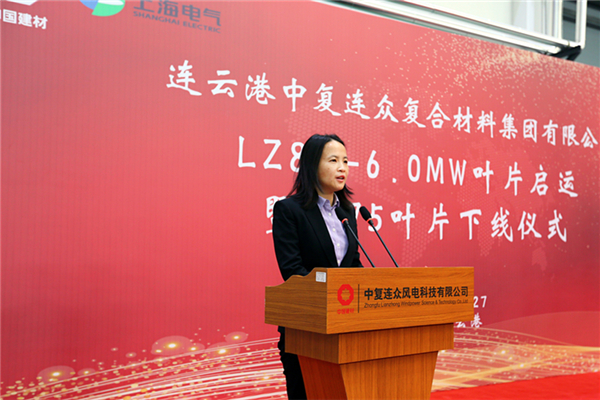 中復(fù)連眾集團(tuán)黨委書記、總經(jīng)理喬光輝、上海電氣風(fēng)電集團(tuán)總裁謝雪瓊分別代表合作雙方致辭,中國復(fù)材集團(tuán)黨委書記、董事長、總經(jīng)理劉標(biāo),連云港經(jīng)濟(jì)技術(shù)開發(fā)區(qū)黨工委副書記、常務(wù)副主任胡傳宏對LZ84-6.0MW葉片啟運(yùn)和B75葉片的成功下線表示祝賀。中復(fù)連眾集團(tuán)副總經(jīng)理、中復(fù)連眾風(fēng)電科技有限公司總經(jīng)理梁穎主持儀式。中國建材集團(tuán)科技部總經(jīng)理郅曉、業(yè)主代表、西門子技術(shù)團(tuán)隊及中復(fù)連眾集團(tuán)中層以上干部、中復(fù)連眾風(fēng)電科技有限公司員工代表出席儀式。