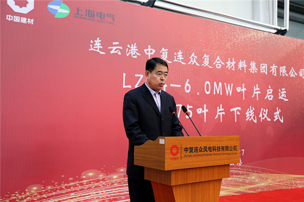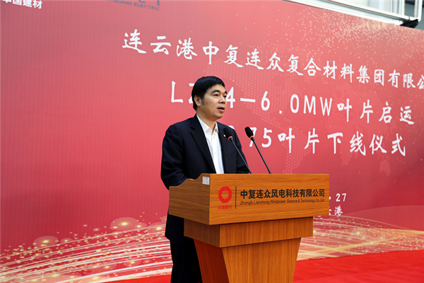 連云港經(jīng)濟(jì)技術(shù)開發(fā)區(qū)黨工委副書記、常務(wù)副主任胡傳宏希望中復(fù)連眾集團(tuán)以84米葉片啟運(yùn)、B75葉片下線為契機(jī),堅持走自主創(chuàng)新的發(fā)展道路,不斷釋放創(chuàng)新創(chuàng)造潛能,推動企業(yè)打造國內(nèi)領(lǐng)先、亞洲一流的風(fēng)電裝備制造基地。