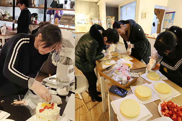 蛋糕烘焙對(duì)于公司女員工來(lái)說(shuō)是一項(xiàng)全新的體驗(yàn),大家興致勃勃,在專業(yè)烘焙師傅的指導(dǎo)下,按照腦中構(gòu)思已久的造型進(jìn)行制作。大家相互幫助、相互贊美,打奶油、裱花、裝飾……每個(gè)人忙得不亦樂(lè)乎,經(jīng)過(guò)近兩個(gè)小時(shí)的時(shí)間,一個(gè)個(gè)創(chuàng)意十足的作品展現(xiàn)在大家的眼前。