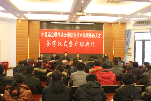 2月25日,中復(fù)連眾委托連云港職業(yè)技術(shù)學(xué)院培養(yǎng)人才簽字儀式暨開班典禮隆重舉行。中復(fù)連眾總經(jīng)理喬光輝、連云港職業(yè)技術(shù)學(xué)院副院長駱汝九、學(xué)院教師代表和全體學(xué)員出席儀式。