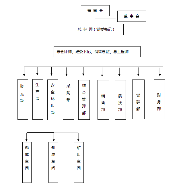 三門峽騰躍同力水泥有限公司位于河南省澠池縣境內(nèi),地處晉、陜、豫三省交匯處,緊靠連霍高速公路、310國道,314省道交通便利。公司總面積274175.46m2,公司類型為一人有限責(zé)任公司。公司實行董事會領(lǐng)導(dǎo)下的總經(jīng)理負(fù)責(zé)制,下設(shè)綜合管理部、生產(chǎn)部、財務(wù)部、采購部、市場部、銷售部、物流部、質(zhì)量技術(shù)部、安全環(huán)保部、黨群部。生產(chǎn)部下設(shè)燒成車間、制成車間、礦山車間。